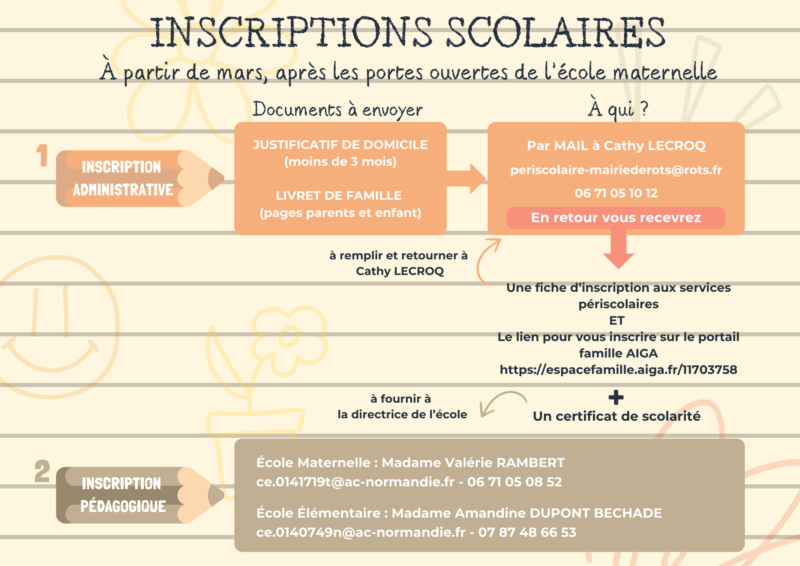 Si votre enfant entrera pour la première fois à l’école de Rots, maternelle ou élémentaire, merci de vous faire connaître au plus vite auprès des directrices.